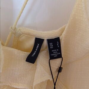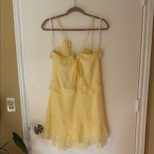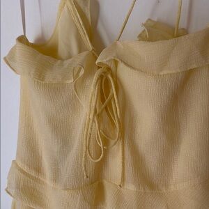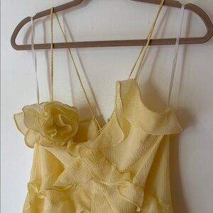 Charming yellow dress with ruffle details. Features delicate straps. Perfect for sunny days.