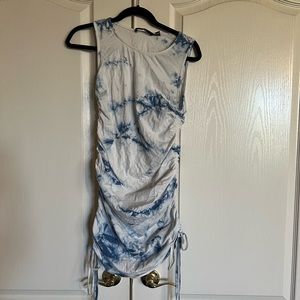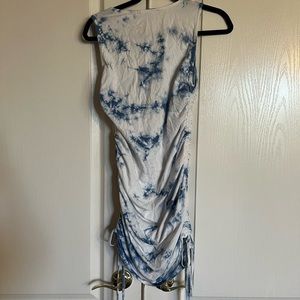 Vero Moda blue and white tie dye tank dress, ruching, size medium