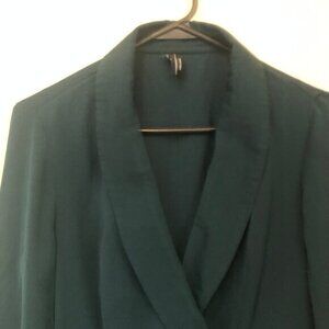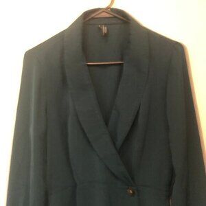 APPROX. measurements lying flat: pit to pit, 18.5”; waist [partially elasticized], 14.5”; shoulder to hem, 36.”