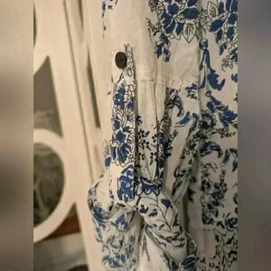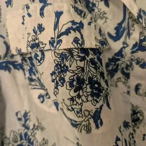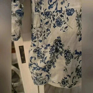 floral/blue and white/ pockets/buttons