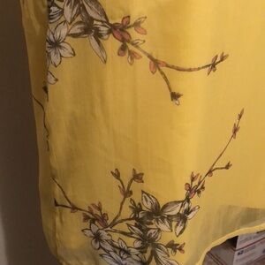 Vero Moda sleeveless top in soft yellow with vine design in gray with pink and white flowers . Sheer top is fully lined. Soft gathering at front neckline. Back has unique closing with three tiny buttons. Very beautiful top. New with tags . Size large