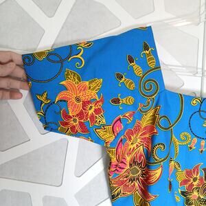VeroEx Handmade Floral Cropped Blouse Womens 8 African Vibrant Maximalist Bold Gorgeous Blue Yellow Red