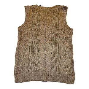 Layer on texture and softness with this chunky cable-knit sweater-vest made from a cozy blend that includes recycled fibers. 50% recycled polyester, 28% polyester, 22% acrylic