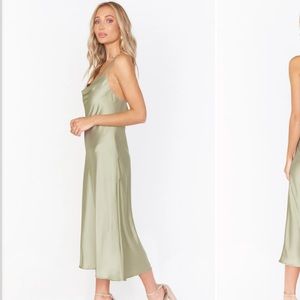 Verona Cowl Dress Moss Green Satin