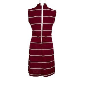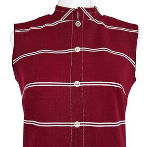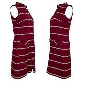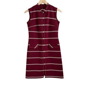 Verona Knits Vintage Sleeveless Burgundy & White Striped Mod Dress (S)