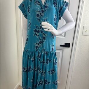 Veronica BEARD Meagan Turquoise Silk Floral Dress Size 2 Retails $695