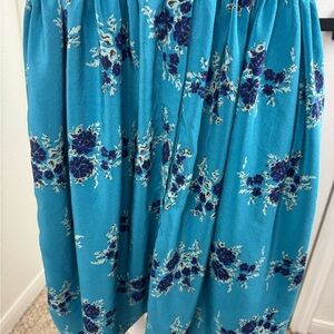 This stunning sundress by Veronica Beard features a pleated design in a captivating blue and black color palette. The maxi length and dolman cap sleeves offer a relaxed yet stylish look, perfect for casual or resort wear. The crew neck and flowing silhouette add to its effortless charm, making it a must-have for any summer wardrobe dress in good condition missing waist belt.