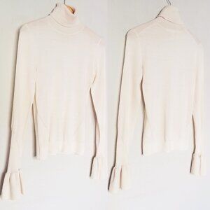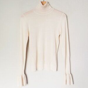 Veronica Beard 100% Merino Wool Turtleneck Tol Bell Sleeve Sweater S Cream Ivory