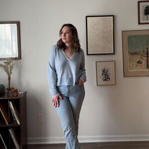 Veronica Beard Cashmere pullover sweater in baby blue. Pastel blue and so, so soft!