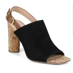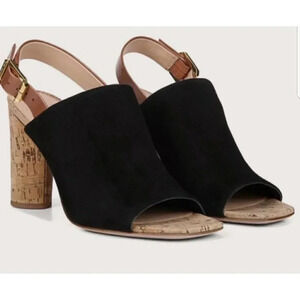 Veronica Beard 7.5M Women Bodhi Slingback Sandals Black Suede Open Toe Cork Heel