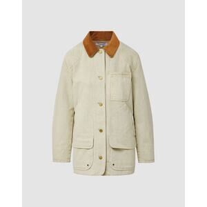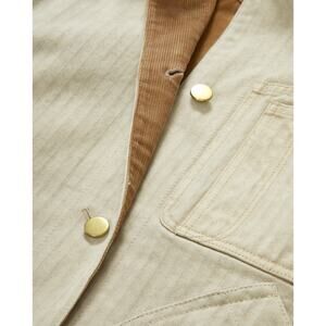 Veronica Beard Abbas Chore Jacket Off-White Cotton Suede-Trim Jacket