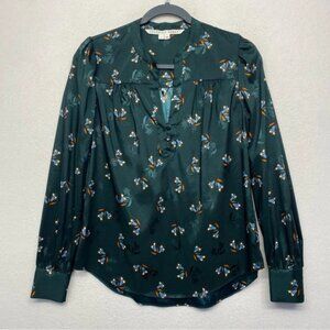 Veronica Beard Abbie Green Floral Blouse 2 Satin