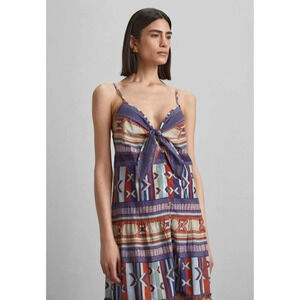 * Veronica Beard's sleeveless Abilene midi-dress is complete with a plunging knotted V-neck and tiered abstract prints.