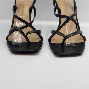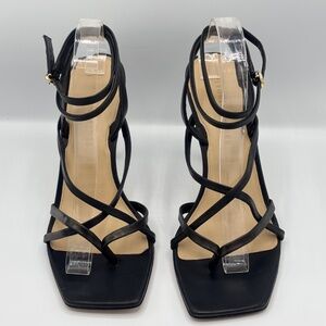 Veronica Beard Abriella Black Leather Strappy Sandals Ankle Wrap Square Toe 10 M