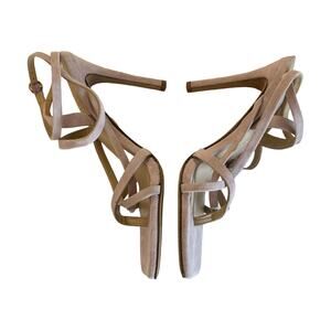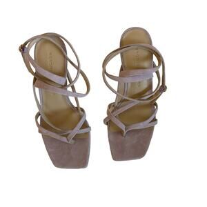 Features: Veronica Beard Abriella Strappy Ankle Wrap Thong Sandals in Lavender; Flaunting a crisscrossed strappy construction, square toe, ankle closure, heel height is approximately 3.75”. Suede upper, leather synthetic sole.