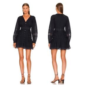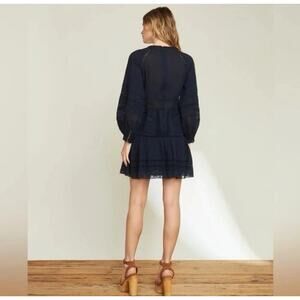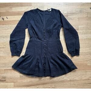 Veronica Beard Addilyn Dress Navy Blue Mini Long Puff Sleeve V-Neck Small N17