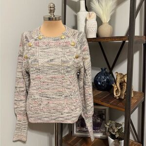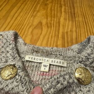 Veronica Beard Adelaida Blouson-Sleeve Sweater Gold Buttons Wool Blend SZ Small