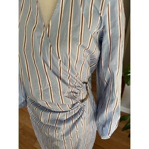Veronica Beard Women Blue Afton Striped Wrap Midi Dress