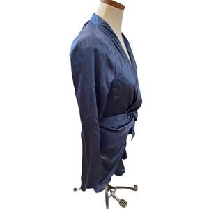 Veronica Beard Agatha Silk Satin Wrap Ruffle Mini Cocktail Dress Steele Blue 4