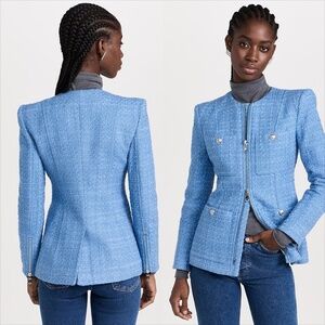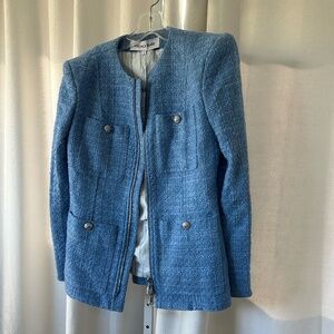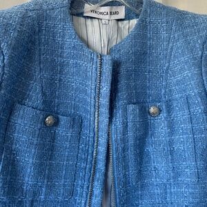 Veronica Beard Agni dickey zipper detail jacket skylight tweed blue