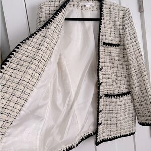 Veronica Beard Albia Cotton Blend Boucle Tweed Blazer Jacket Cream Black