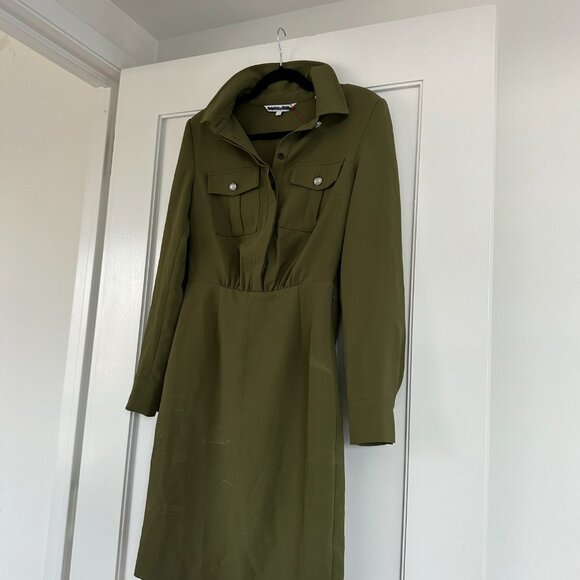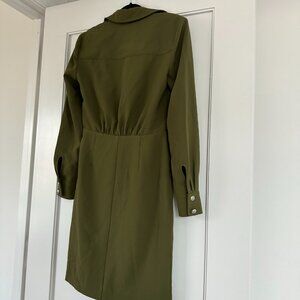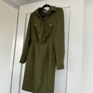 Veronica Beard A-line Shirt Dresss In Army Green Button Front Long Sleeves Front
