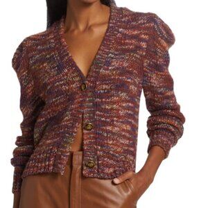 Veronica Beard Amosa Knit Puff-Sleeve Wool Blend Cardigan Sweater Multicolor S