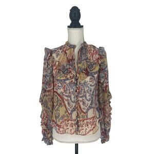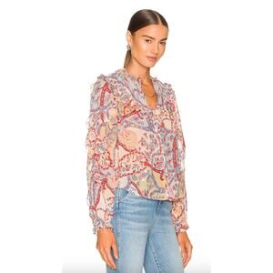 Veronica Beard Andri Paisley Georgette Blouse in Multicolor Paisley Print.