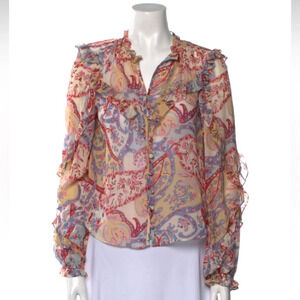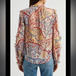 Veronica Beard Andri Paisley Print Silk Chiffon Ruffle Sleeve Sheer Blouse 2