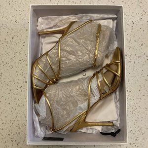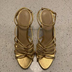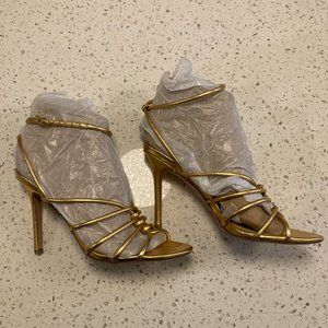 Veronica Beard Aneesha Leather Strappy Sandals Heels In Gold 8.5 Retail $395