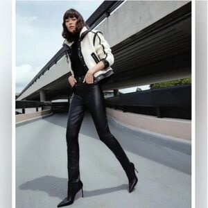 Veronica Beard Anita Faux Shearling/Leather Jacket Cream & Black XS
