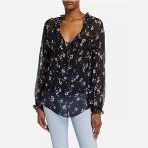 Veronica Beard Antonette 100% Silk Top In Black Floral Size 4 with Cami Feminine