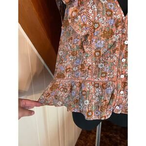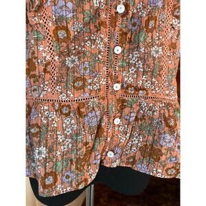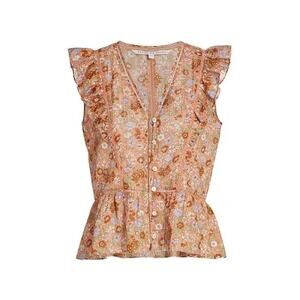 Veronica Beard Araya Pink Floral Button Down Ruffle Top Sz 10