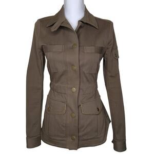 Veronica Beard Army Green Camp Jacket Cotton Utility Military Gold Buttons