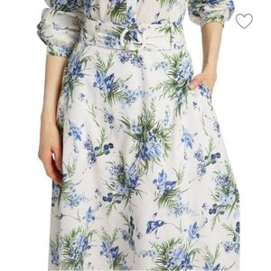 Veronica Beard Arwen Floral Cotton Belted Midi-Skirt