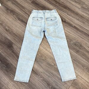 Elevate your style with these light blue high-waisted jeans. Perfect for any casual outing, these jeans offer comfort and a flattering fit.