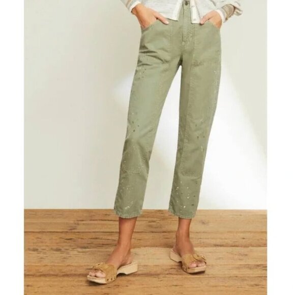 Veronica Beard's Arya splattered carpenter jeans are cut from twill fabric. Finished with a cropped hem. This relaxed style is detailed with a high-rise waist, straight legs, and oversized patch pockets.