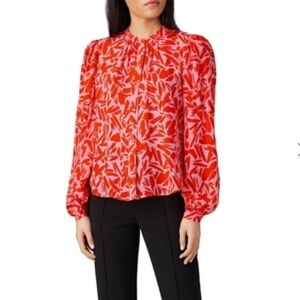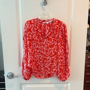 Veronica Beard Ashlynn Blouse Red Floral Printed Silk Size 4