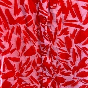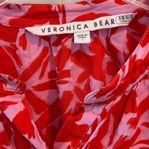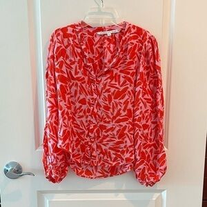 Veronica Beard Ashlynn Blouse Red Floral Printed Silk With Flaws