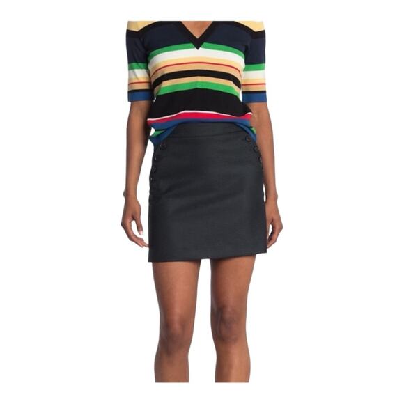 Veronica Beard Barnes Houndstooth Skirt New With Tags in a size 10. Has two faux front pockets with four buttons on each. Back concealed zipper with eye and hook. Fully lined. Self 69% polyester, 29% viscose, 2% elastane. Lining 100% polyester. Measures approximately 16” flat lay waist, and 17” in length. New with tags.
