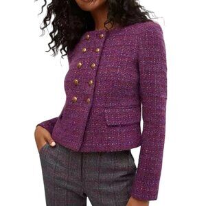 Veronica Beard Bentley Double Breasted Tweed Jacket Size 2 Aubergine NWT CJ-2131
