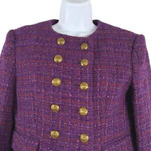 Veronica Beard Bentley Double Breasted Tweed Jacket Size 2 Aubergine Multi Preppy Old Money NWT CJ-2131