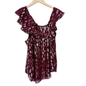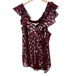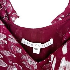 Veronica Beard Benton Maroon Silk Metallic Blouse Sz 8