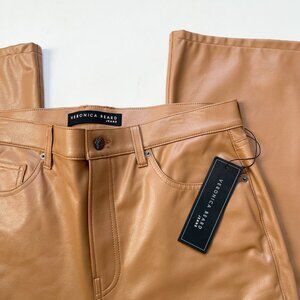 Veronica Beard Beverly Faux Leather High Rise Flare Pants Cognac Size 32 NEW NWT