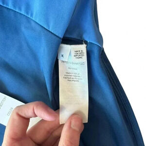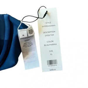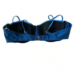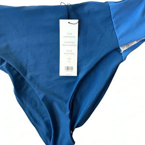 Veronica Beard Dyer Bikini Top and Ormond Bikini Bottom in Blue Marina. Size XL/ Extra Large. NWT/New with tags. Dyer Bikini Top Features: bustier-style top, demi underwire cups, adjustable spaghetti straps, and back clasp, tonal color block styling Ormond Bikini Bottom Features: high-waisted, lined, elasticized waistband. 98% Cotton; 2% Spandex