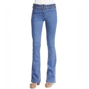 Veronica Beard Biscayne Braided-Waist Boot Cut Jeans