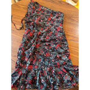 Veronica Beard Black Ballard Printed Ruffle One-Shoulder Mini Dress size 8