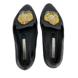 Veronica Beard Black Flats 36.5 Royal Navy Gold Patch