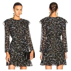 Veronica Beard Black Floral Metallic Long Sleeve Dress