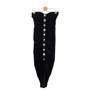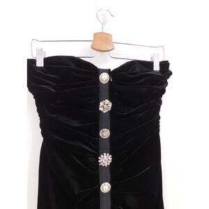 Veronica Beard Women's Black Palo Strapless Ruched Velvet Midi Dress Size 4
